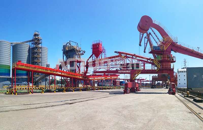 采用管式螺旋輸送機或空氣輸送斜槽與卸船機對接,物料閉式輸送,出料均勻連續,無跑冒滴漏現象。