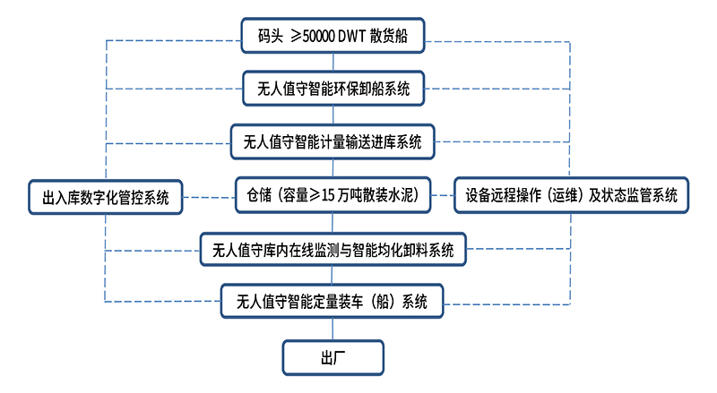 散裝水泥中轉站按照所在布點位置和相對規模依次分為海港站、河港站、鐵路站、公路站等多種型式,海港站相對規模較大。下面談談未來的海港型散裝水泥中轉站——智能倉儲物流系統,也供其他型式的中轉站參考。